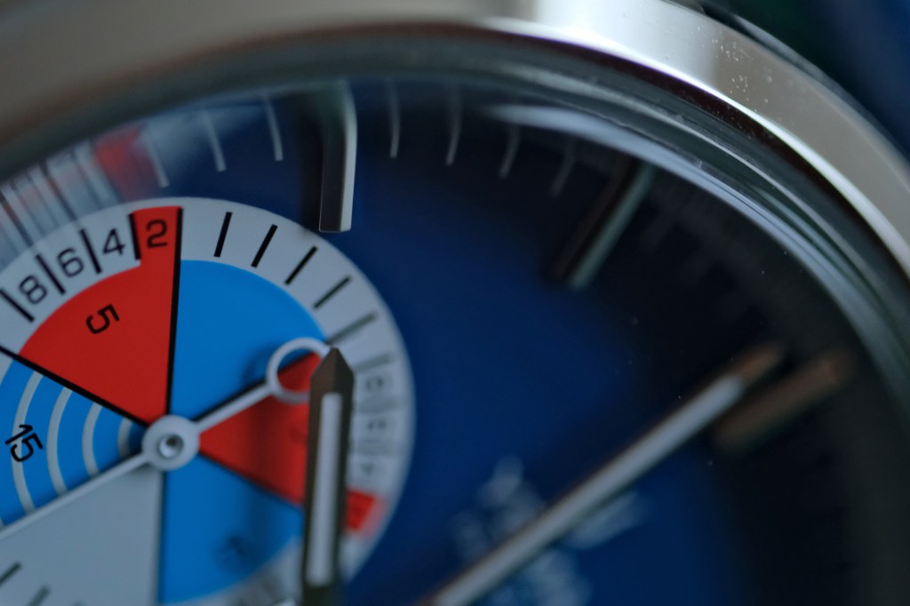 Comme je le disais plus haut, cette Yachtingraf n’a pas de lunette externe et cela va magnifier son principal atout : son cadran très coloré.