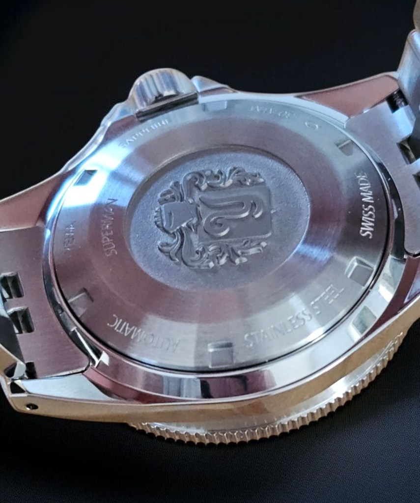 Le gros point commun est bien évidemment le design iconique de la Superman avec son bloc lunette et le mouvement suisse Sellita SW200.