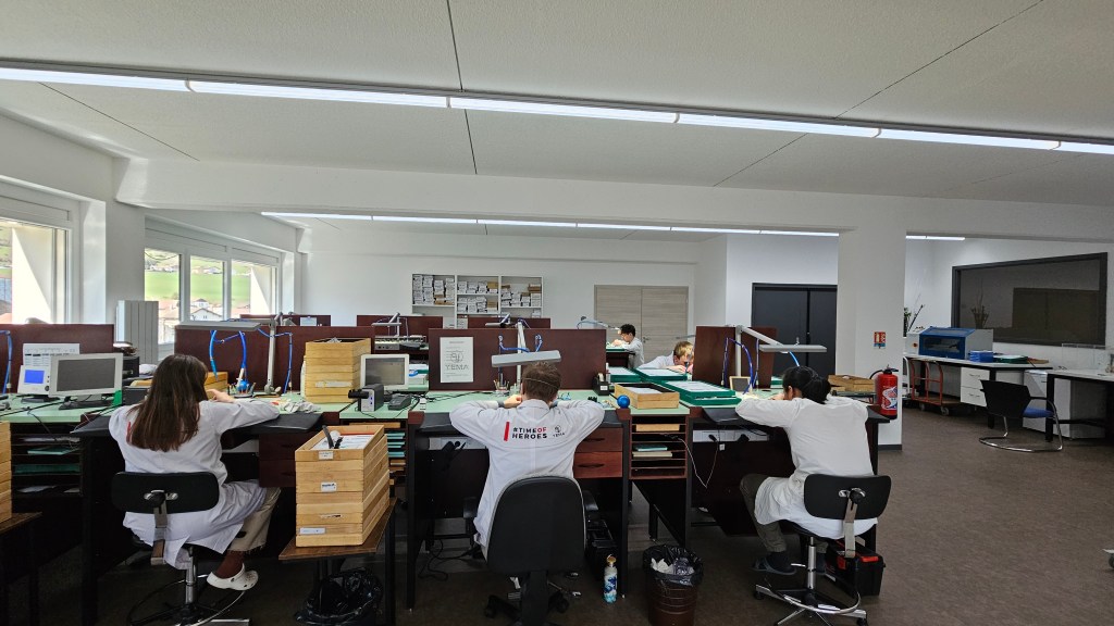Au dernier étage, l’atelier de montage où sont emboitées, testées et contrôlées les montres.