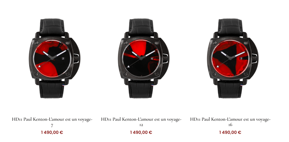 A noter une série spéciale avec l’artiste anglais Paul KENTON où chaque cadran est unique. En gris sur noir pour “Time captured in the city” et en rouge sur noir pour “l’Amour est un voyage”.