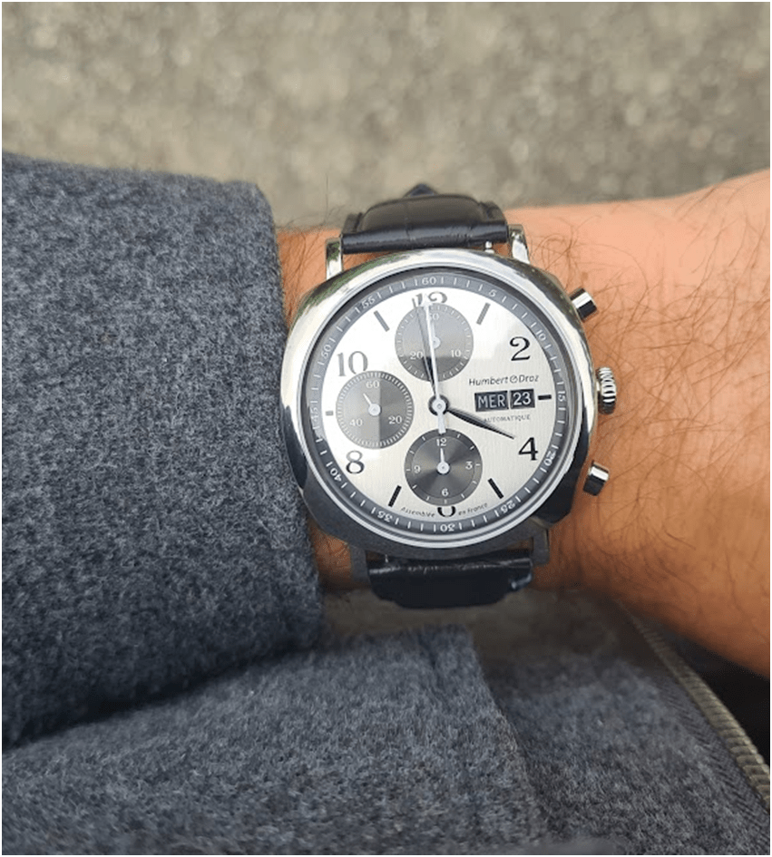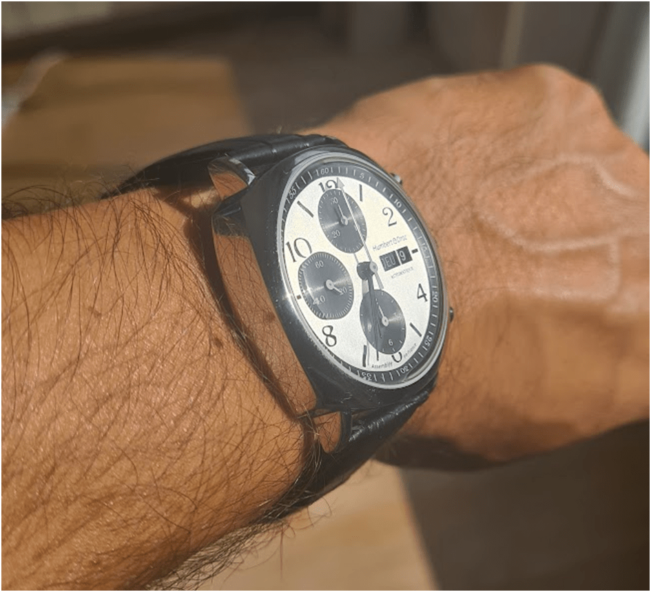 HD6: C’est un chronographe de forme coussin élégant à 3 sous cadrans. Classique et efficace. Je vais plus vous parler de l’itération actuelle: la HD6.1 que j’ai en test.