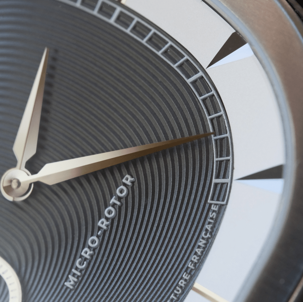 Le logo et le nom de la marque sont bien intégrés. Cela reste discret. Un bémol me concernant sur la présence de la mention « MICRO-ROTOR ». C’était à mes yeux dispensable ou alors il aurait fallu l’intégrer plus bas, en plus petit.